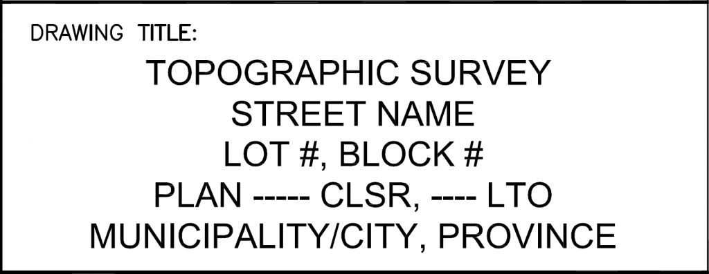 DRAWING TITLE: Contains survey types conducted, location, lot number, and plan number