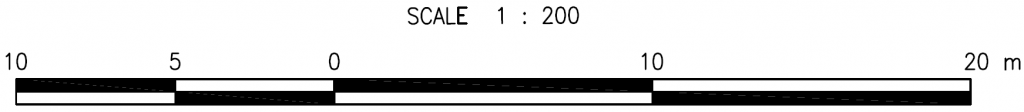SCALE BAR: Graphic ruler that measures distances from drawing to real world